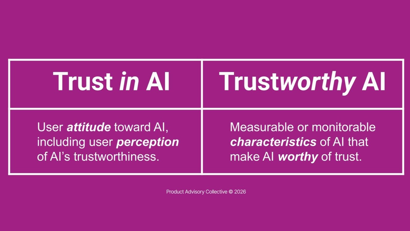 Trust in an AI product or system is a user's attitude or perception. Because low trust inhibits user adoption, it’s critical for product teams to proactively collect user feedback and measure perceptions in order to differentiate competitively.